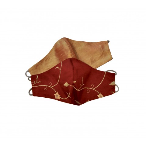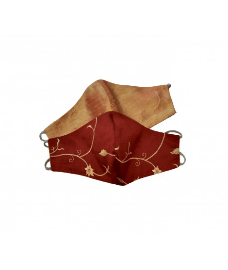 Silk, Reversible, Washable, comfortable, style face mask with embroidery. You can wear this silk hand made mask on both side- plain cooper or red floral embroidery.