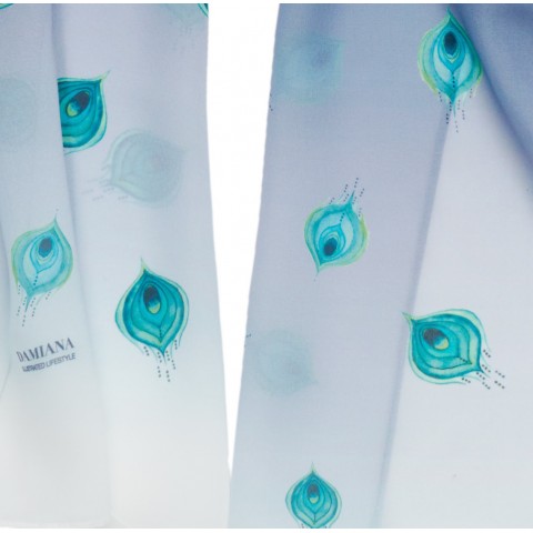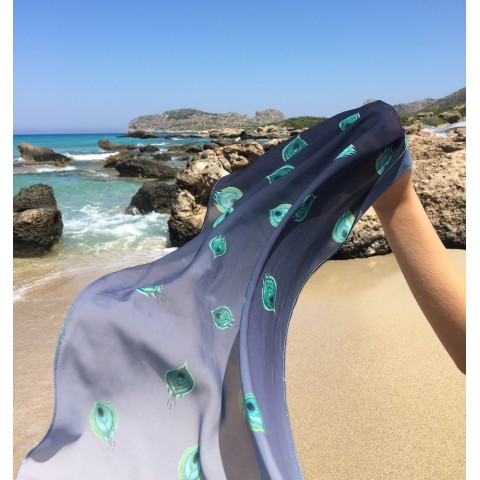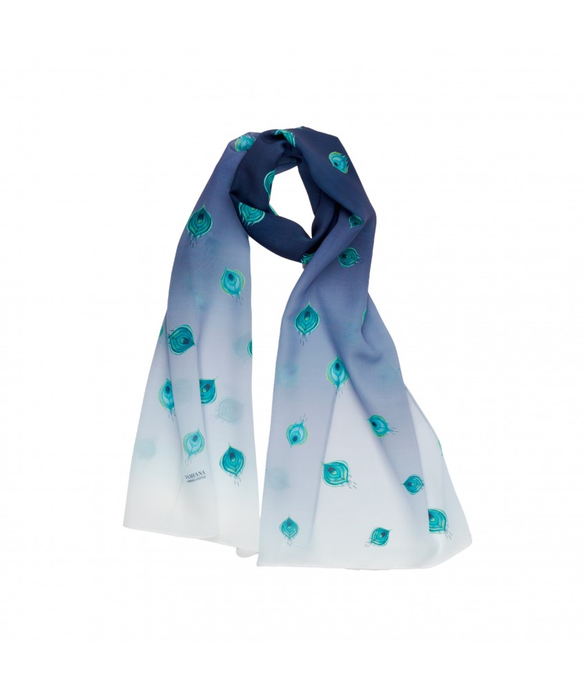 Discover an array of beautiful designs from our very own hand painted collections. Think elegant Chiffon appearance in bright and sophisticated colours. Peacock's tail was worshiped already in Antique as a symbol of perfection and the bird is regarded as a symbol of beauty and integrity.Treat yourself or a friend with a fashion accessory for life.