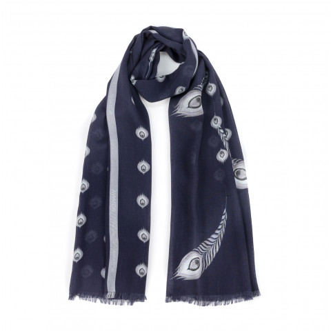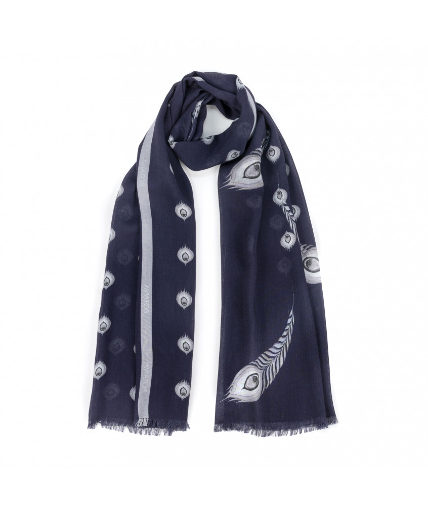 Think light and bright viscose Aviator scarf for all your journeys. Its dimension, softness and sophistication supported with hand-painted patterns of peacock’s feather, which are considered as a symbols of perfection, beauty and integrity from Antiquity. Create a chic, elegant fashion style on jour journeys.