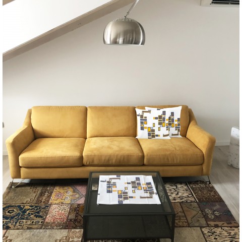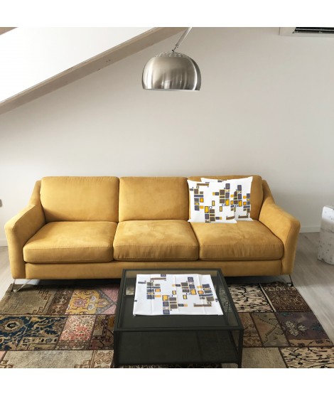 Odkrijte čudovite odtise ročno naslikanega grafičnega vzorca na mehkem bombažu. Vzorec v retro paleti, doda pridih sodobne elegance, primeren je tako za moderne, kot stilno opremljene interiere. Blazina SQ je preobrazba za vašo najljubšo zofo.