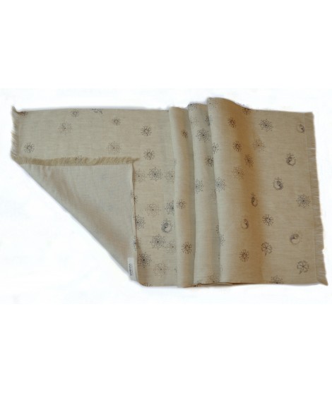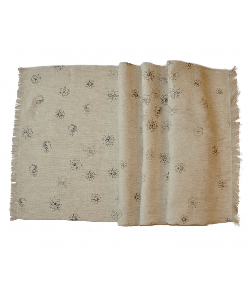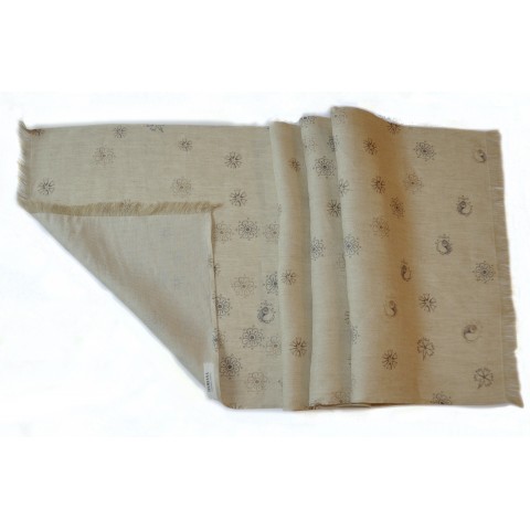 Ročno izdelan namizni tekač, potiskan z avtorskim motivom na prefinjenem lanenem materialu. Zaključen z resami in oblikovan, da na vašo mizo vnese pridih elegance.