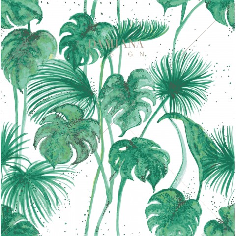 Ročno naslikan Jungle vzorec. Slika fantazijske džungle je oblikovana v ponavljajoči / neskončen vzorec. Dizajn vzorca je v digitalni obliki, visoke resolucije, pripravljen za tisk. Primeren je za digitalno in fizično reprodukcijo na tekstil, papir, galanterijo, steklo, keramiko,.....