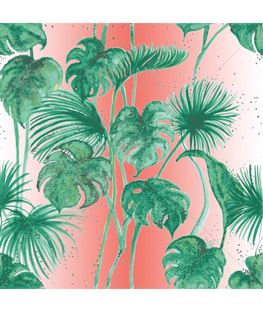 Ročno naslikan Jungle vzorec. Slika fantazijske džungle je oblikovana v ponavljajoči / neskončen vzorec. Dizajn vzorca je v digitalni obliki, visoke resolucije, pripravljen za tisk. Primeren je za digitalno in fizično reprodukcijo na tekstil, papir, galanterijo, steklo, keramiko,.....