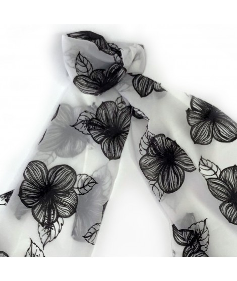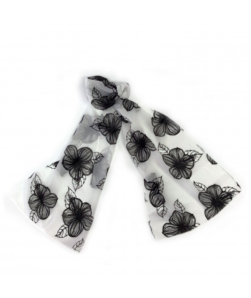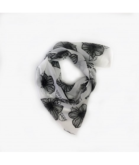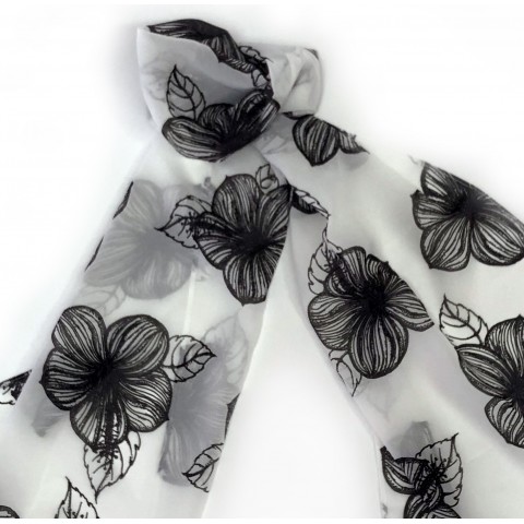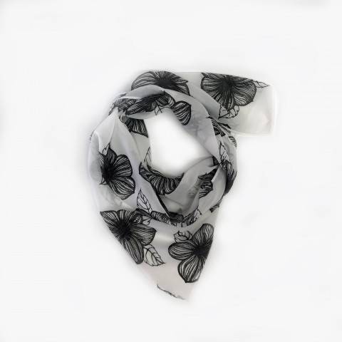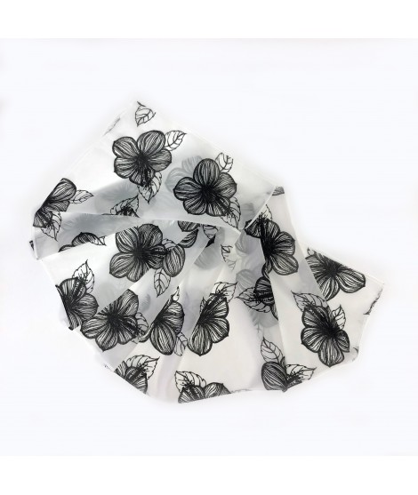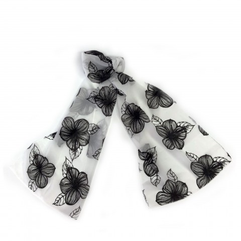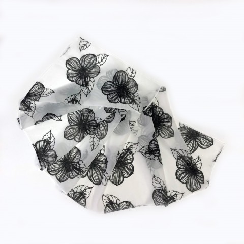 Odkrijte čudovite odtise ročno naslikanih Lilij v črno-beli tehniki, na mehkem prefinjenem šifonu. Dopolnite vaš modni slog z elegantnim prosojnim šalom LILIA.